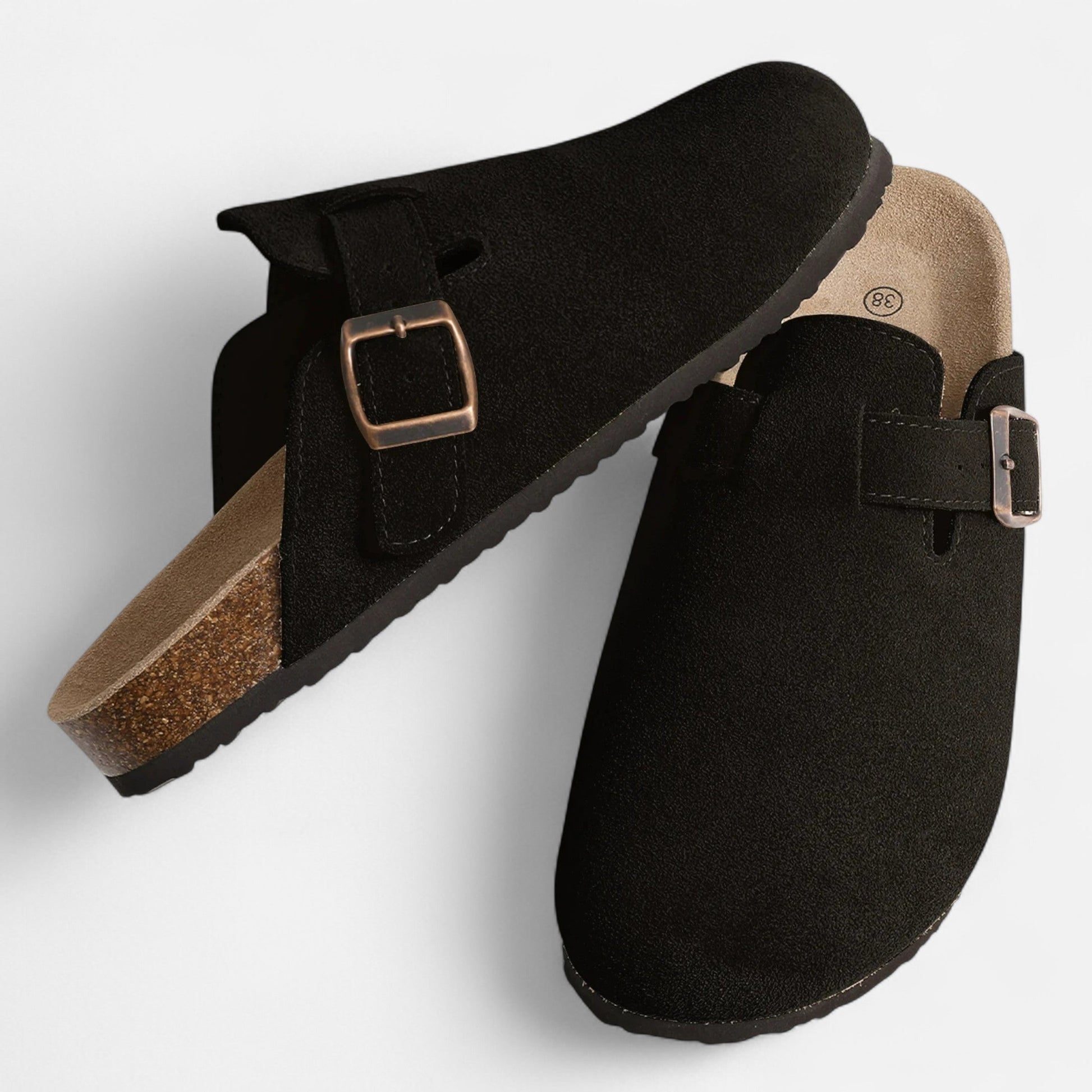 La semelle en liège avec soutien de voûte plantaire assure un confort durable, en épousant naturellement la forme de votre pied. Le daim respirant et la conception antidérapante offrent stabilité et douceur à chaque pas.