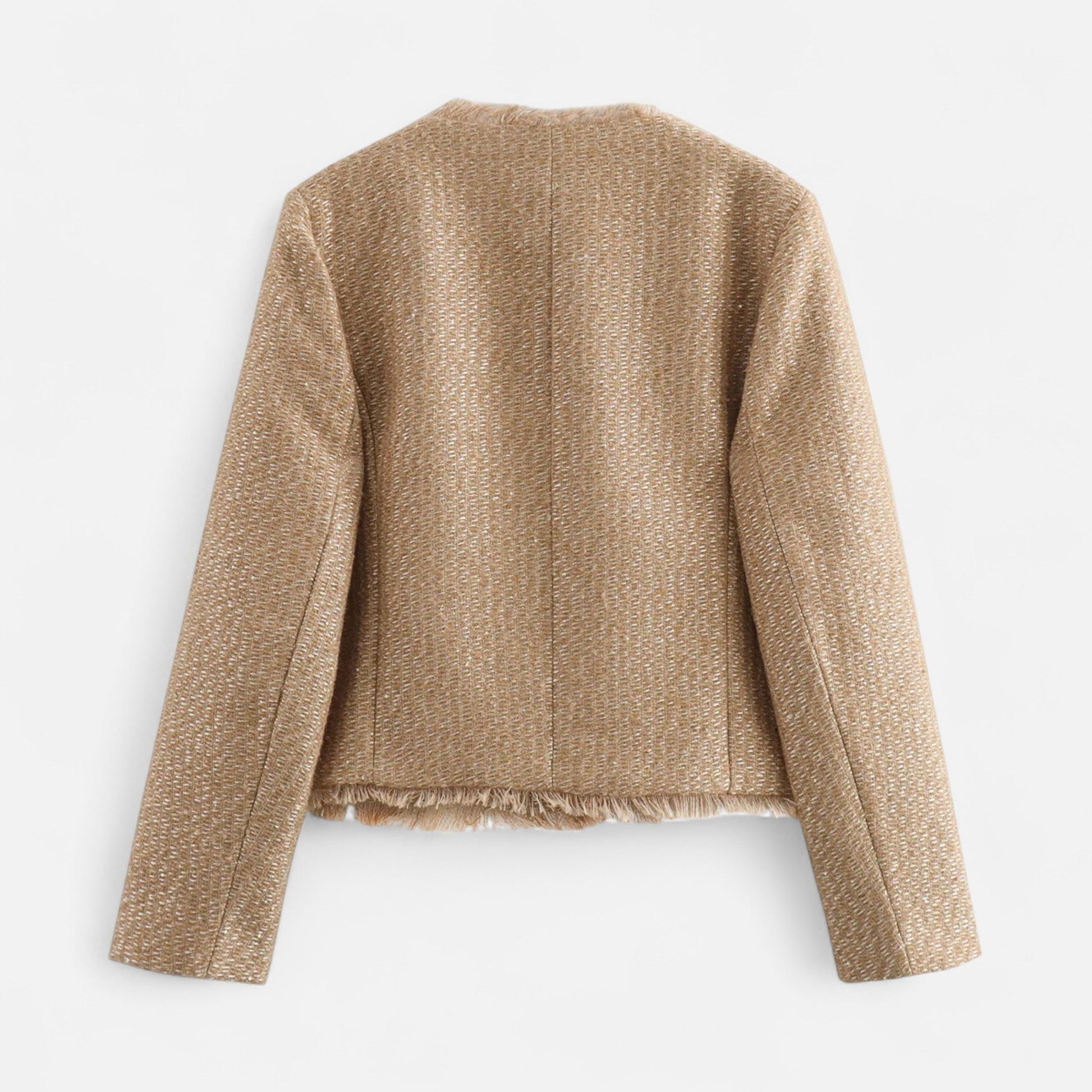 Polyvalente et raffinée, cette veste se porte aussi bien avec un pantalon habillé qu’avec une jupe ou un jean chic. Avec, elle devient une pièce incontournable, symbole d’un héritage élégant et moderne.